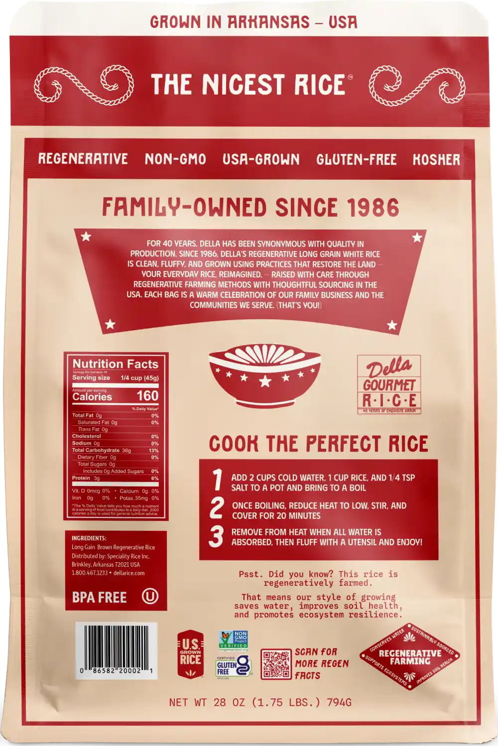 The everyday essential that belongs in every pantry. Della’s long grain white rice cooks up fluffy with distinct, separate grains and a clean, mild flavor that complements any cuisine. From casseroles to soups to a simple side with dinner, this is the dependable, all-purpose rice your family will reach for night after night.