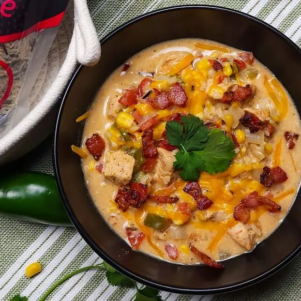 - toppings: shredded cheese, extra bacon bits, cilantro