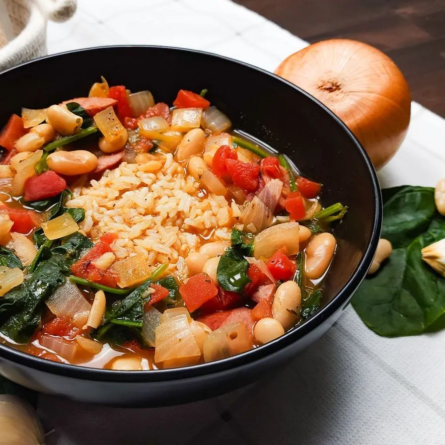 - Heat a large pot and cook the sausage, onion, and garlic for 5 minutes until the sausage turns brown and the onion becomes soft. Get rid of the extra fat, if needed. Add beans, tomatoes, broth, Italian seasoning, salt and pepper. Let it come to a boil, then lower the heat, cover the pot, and let it simmer for 5-7 minutes.